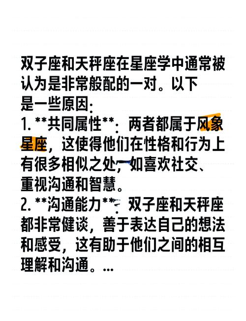天秤座和双子座是两个自然默契和吸引力的风象星座。他们都喜欢社交,探索新事物,有相似的价值观和人生目标。