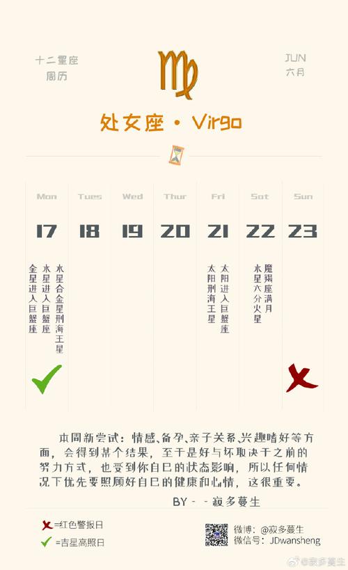 单身处女座可能会有意想不到的邂逅,在朋友聚会或社交活动中遇到自己喜欢的人。抓住机会,不要害羞,大胆表达自己的想法。有伴侣的处女座感情稳定,像以前一样相爱。