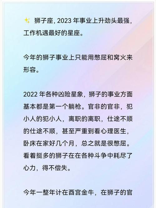 对于属兔狮子座的女孩来说,2024年是一个充满复杂变化的年份。在命运的潮流中,既有灿烂的光辉,也有不可忽视的挑战。作为十二生肖兔和星座狮子座的结,你生来就有魅力和智慧,但2024年的天象财富将对你的事业、感情和个人发展产生强烈影响。今年,你的运势如何?需要特别关注哪些领域?接下来,我们将详细分析今年的关键运势波动,帮助你在新的一年里稳步前进,拥抱自己的成功。