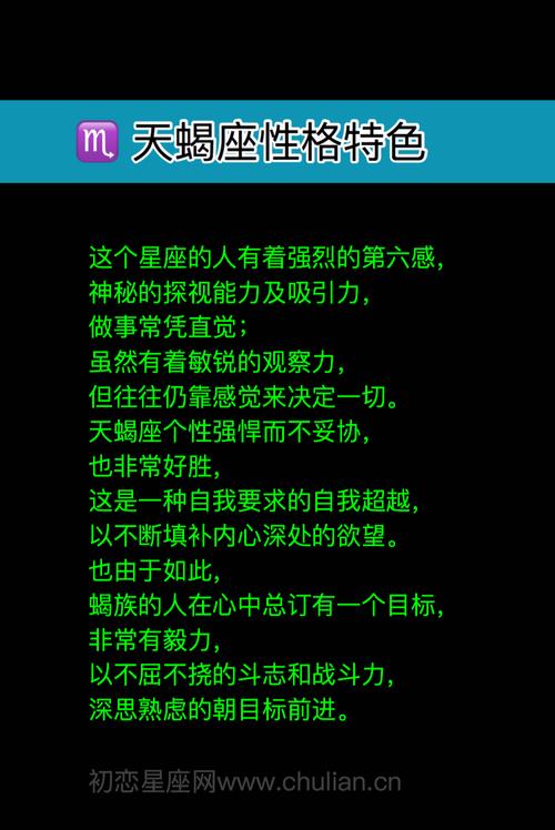 天蝎座男人通常以其强烈的情感、深邃的思维和不容忽视的魅力著称。他们的内心世界极其丰富,常常隐藏着各种复杂的情感和动机。以下是一些关于天蝎座男人的主要性格特征: