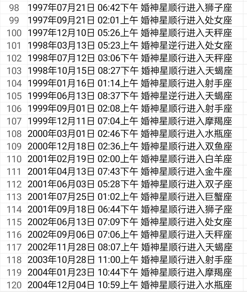 婚神星座查询表2000